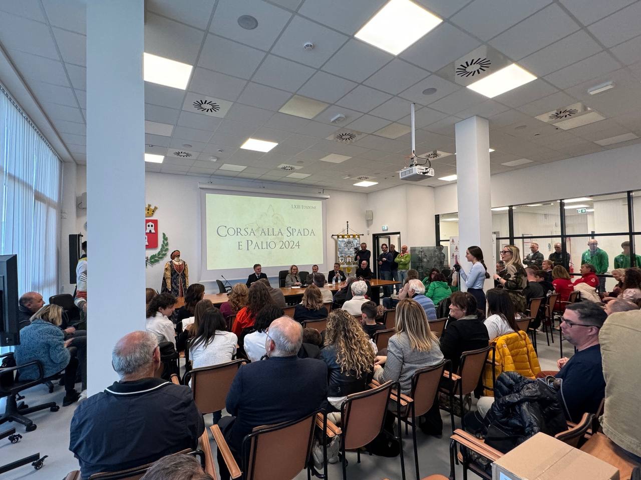 La 43° edizione della Corsa alla Spada e Palio di Camerino è stata presentata oggi pomeriggio nella Sala consiliare del Comune di Camerino. Un’edizione declinata al femminile, con incontri dedicati alle donne di casa Varano e un nuovo bellissimo abito che va ad arricchire il patrimonio vestiario della rievocazione storica.