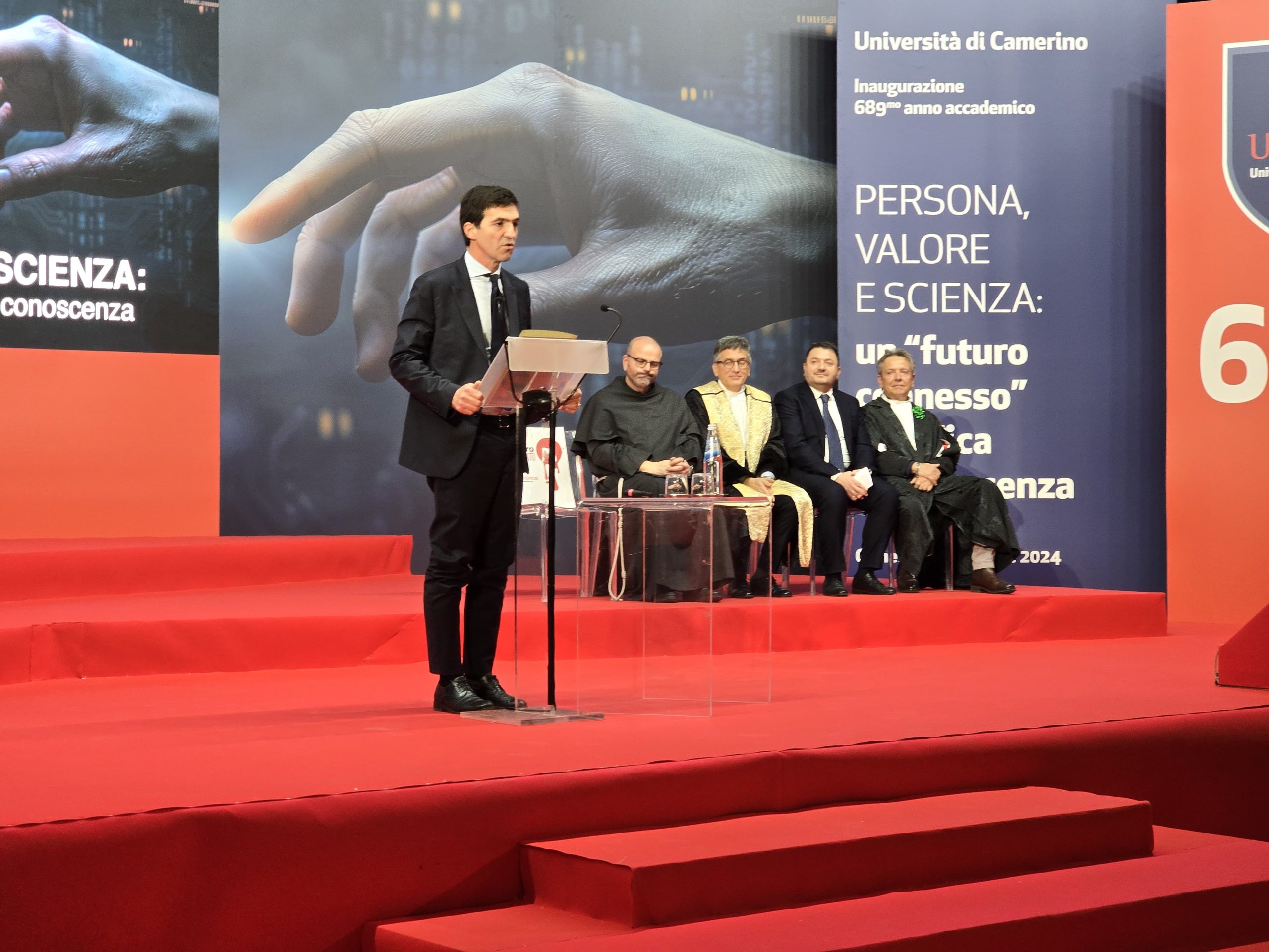“Dal 1336, per 689 anni, questa istituzione secolare ha accompagnato la crescita del nostro territorio, fungendo da punto di riferimento e garanzia per l’intero comprensorio”. Queste le parole del presidente della Regione Marche, Francesco Acquaroli, durante l’apertura ufficiale del 689° anno accademico dell’Università di Camerino, celebrata nell’Auditorium Benedetto XIII. L’evento, intitolato “Persona, valore e scienza: un futuro connesso tra etica e conoscenza”, ha offerto un’importante occasione di riflessione sul ruolo cruciale dell’università nella promozione della formazione, dell’innovazione e dello sviluppo locale.