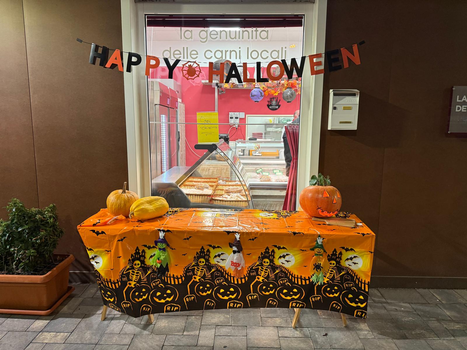 Niente caramelle, cioccolatini o dolcetti… ma crostini caldi con salsiccia offerti a tutti i bambini che hanno bussato al negozio.