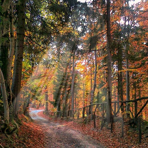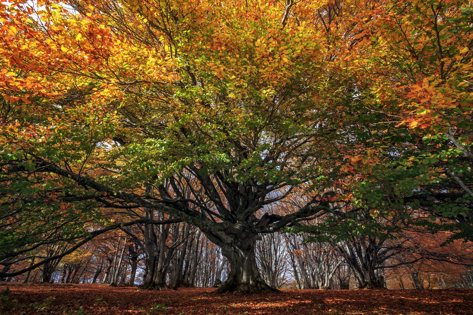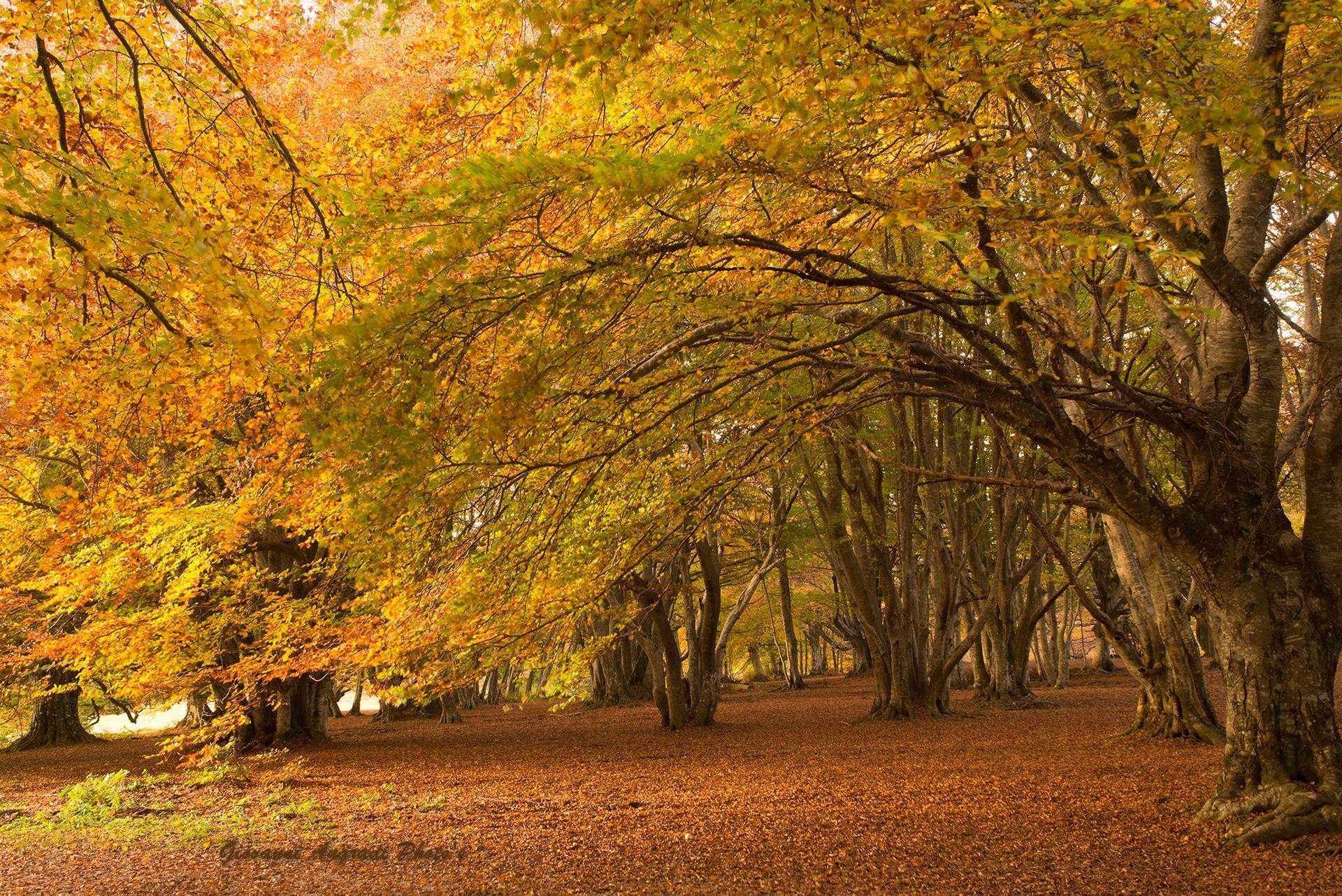 Nelle foto: il foliage nella faggeta di Canfaito