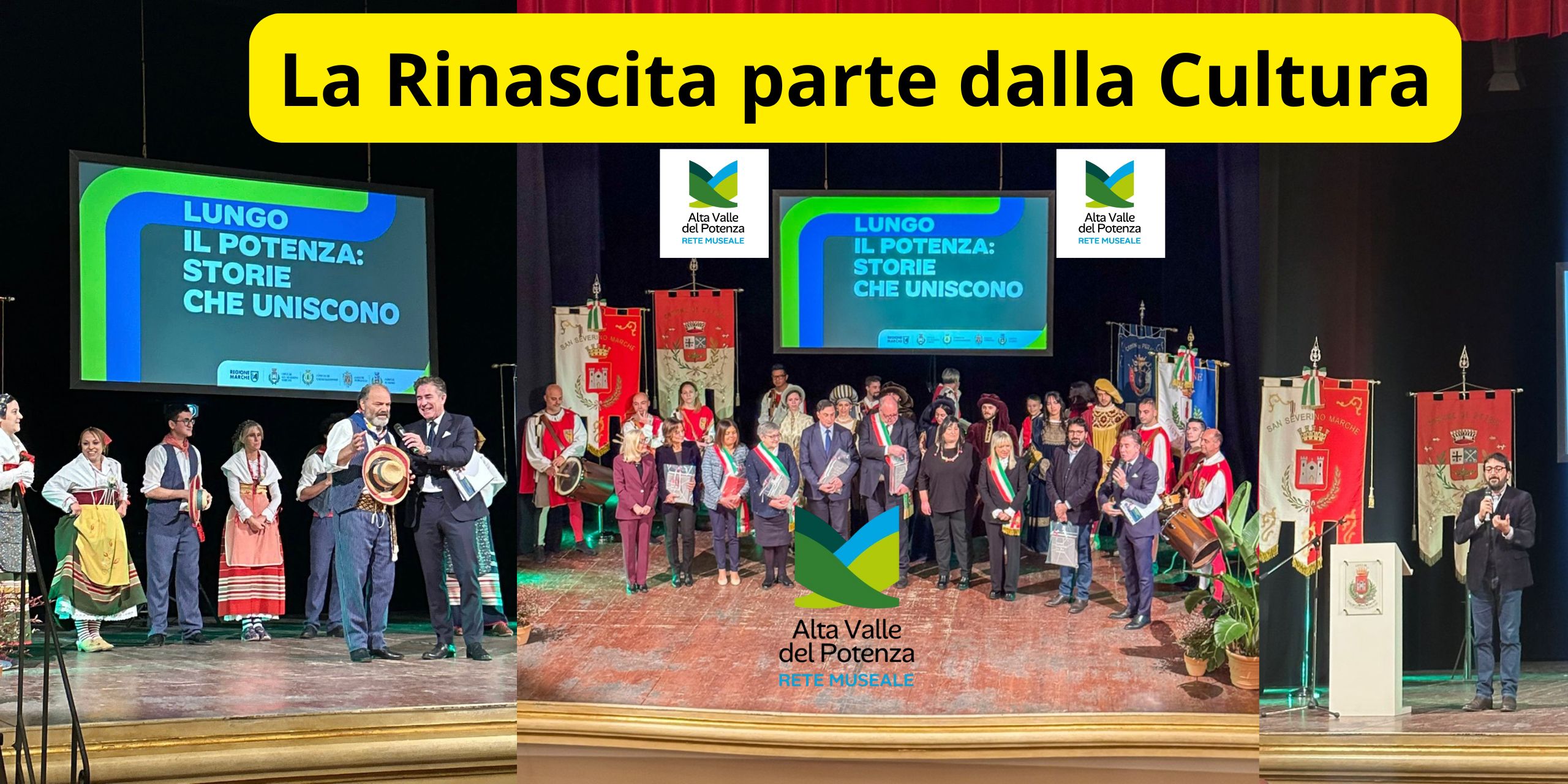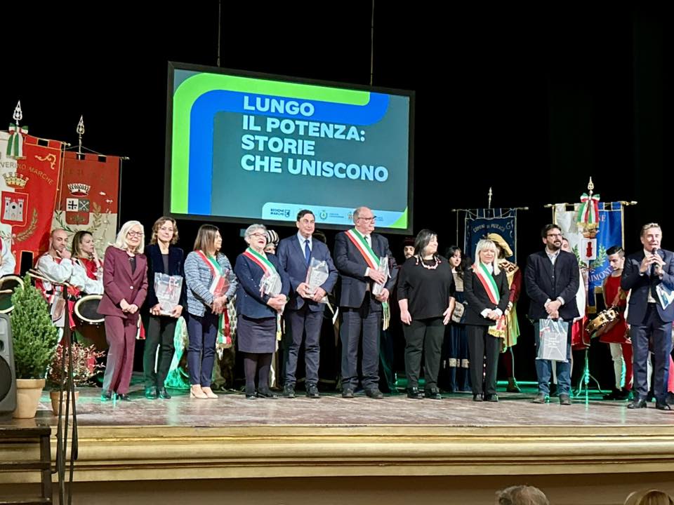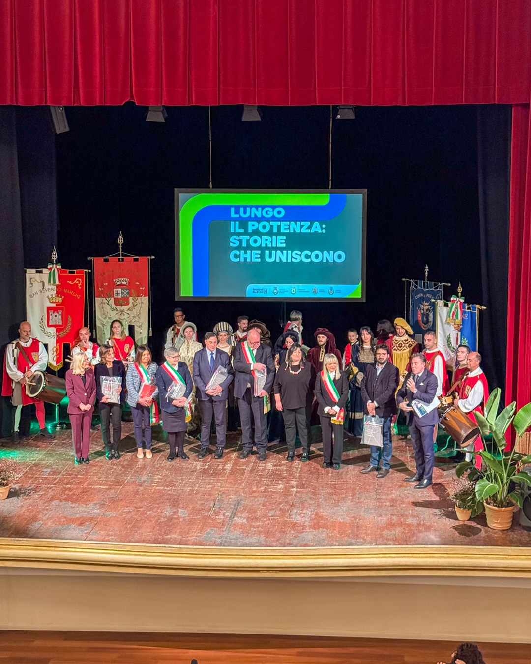 Al teatro Feronia, in occasione dell’evento pubblico dal titolo: “Lungo il Potenza: Storie che Uniscono”, un talk show dedicato alla valorizzazione del patrimonio culturale e paesaggistico di quest’area del Maceratese, è stato presentato quello che vuole essere il  simbolo di una rinnovata identità e di un impegno congiunto assunto dal poker di Amministrazioni.