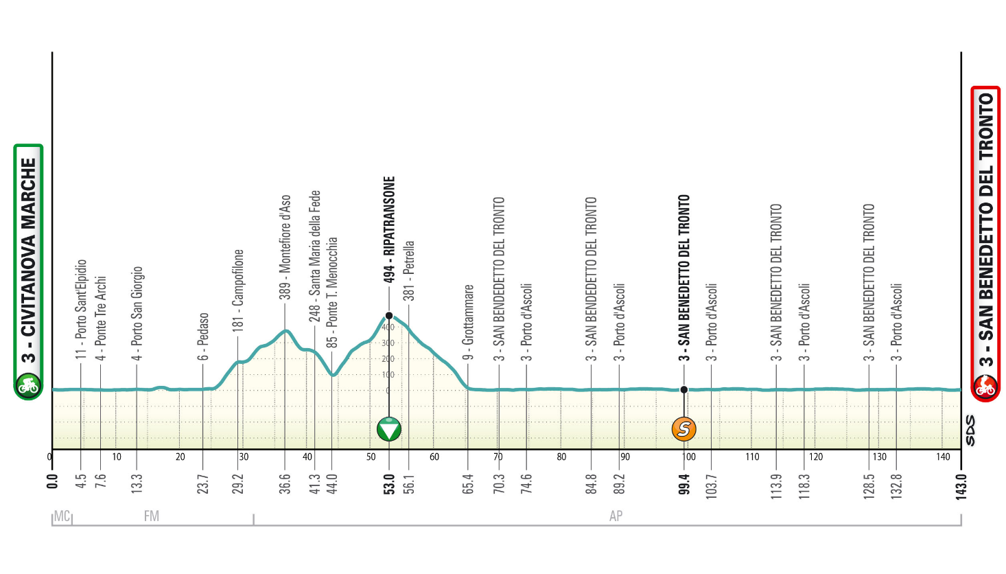 La Corsa dei Due Mari attraverserà cinque regioni con un percorso variegato che offrirà occasioni ad ogni tipologia di corridore: dalla cronometro individuale di Lido di Camaiore, che aprirà come da recente tradizione la caccia alla Maglia Azzurra, fino alla frazione conclusiva di San Benedetto del Tronto, dove verrà alzato al cielo il Tridente di Nettuno. Accantonato l’arrivo in salita, che aveva caratterizzato le ultime edizioni, il percorso rimane ricco di insidie, come lo sterrato che chiude la frazione di San Gimignano e i numerosi muri presenti nelle frazioni marchigiane che daranno verosimilmente una conformazione definitiva alla classifica generale. Cresce il dislivello totale: saranno 15.550 i metri complessivi, contro i 14.400 dell’edizione 2025. |