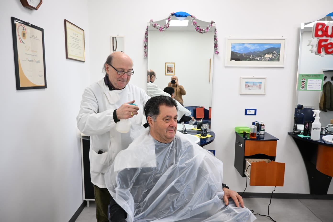 Quattro anni dopo, nel 1962, apre la sua prima barbieria in via Roma e nel 1969, alla cessazione dell’attività del suo maestro, si trasferisce in piazza Vittorio Emanuele, sotto il loggiato di Palazzo Pallotta: un luogo diventato simbolo, dove per anni si sono incrociate storie e generazioni intere.