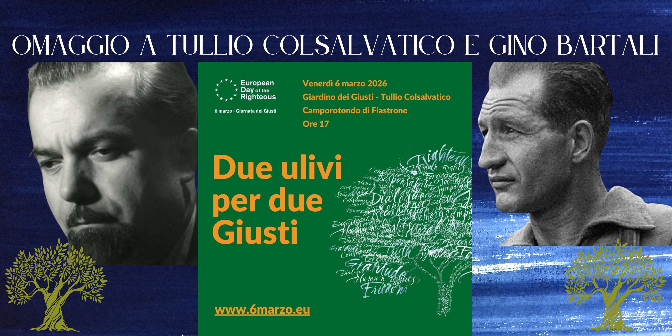 L’amministrazione comunale – che già aveva reso omaggio al concittadino Colsalvatico con l’intitolazione dello spazio verde – quest’anno ha deciso di dedicare due ulivi a due figure straordinarie riconosciute come Giusti fra le Nazioni e dell’Umanità. Il primo, appunto, Tullio Colsalvatico, scrittore e poeta nato proprio a Camporotondo di Fiastrone che, durante la Seconda Guerra Mondiale, salvò 42 ebrei romani, tra cui 12 bambini, rifugiati a Fiastra. Il secondo, Gino Bartali, celebre ciclista che partecipò a una rete clandestina di salvataggio, trasportando documenti falsi nascosti nella propria bicicletta.