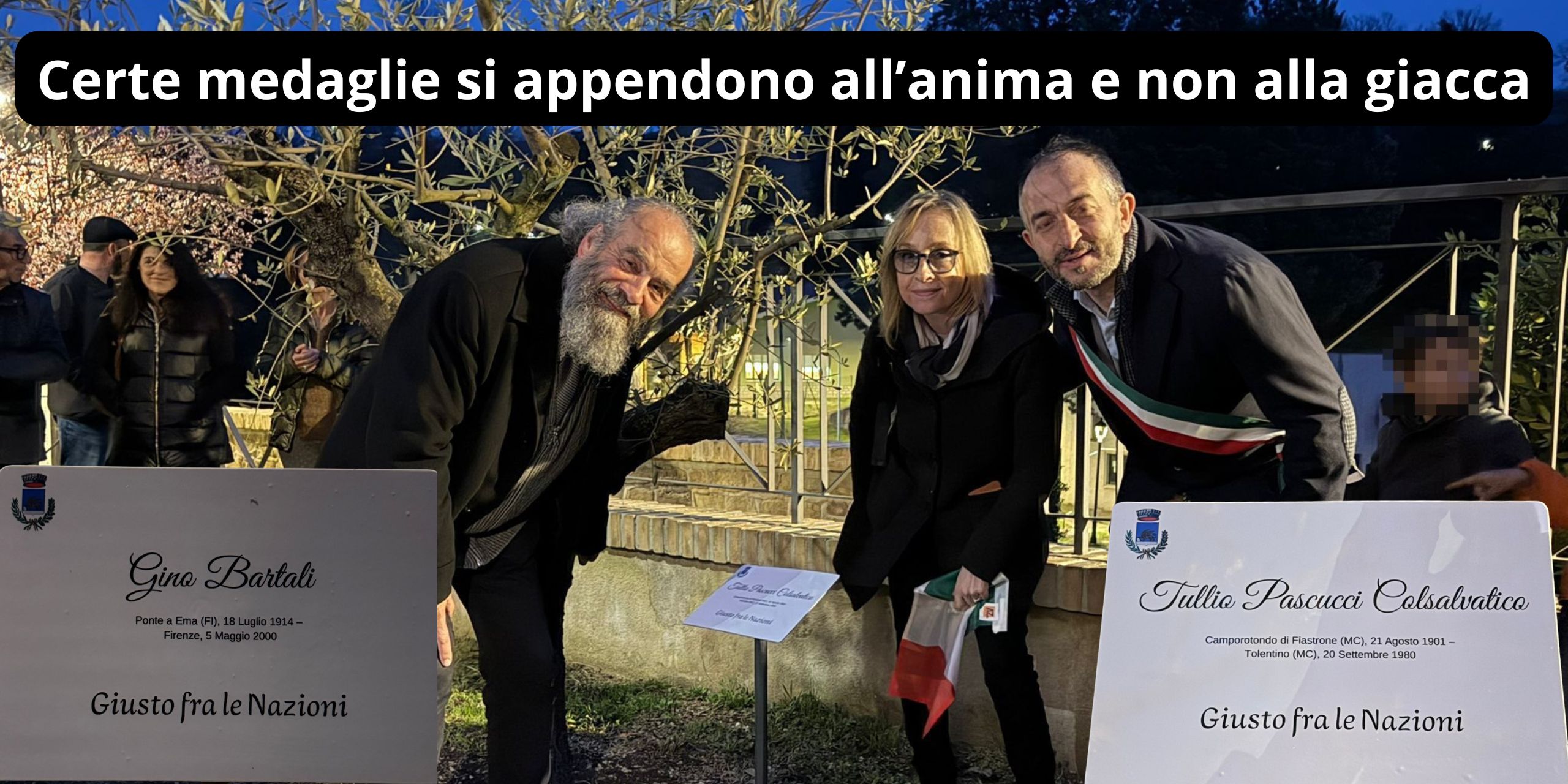 «Il bene si fa ma non si dice. Certe medaglie si appendono all’anima e non alla giacca». È una delle frasi più celebri di Gino Bartali e racchiude perfettamente lo spirito dei Giusti, uomini e donne che hanno scelto di fare la cosa giusta senza cercare riconoscimenti. È con questo spirito che ieri pomeriggio a Camporotondo di Fiastrone la comunità ha reso omaggio a due figure straordinarie della storia italiana, lo stesso Bartali e Tullio Colsalvatico, con la cerimonia di intitolazione di due ulivi nel Giardino dei Giusti dedicato allo scrittore originario proprio di Camporotondo. Un momento che ha unito memoria e generazioni nel segno di chi, durante la Seconda guerra mondiale, scelse di rischiare la propria vita per salvare quella degli altri. Sia Bartali che Colsalvatico, infatti, non parlarono mai pubblicamente delle loro azioni: gesta che permisero di salvare centinaia di ebrei dalle persecuzioni nazifasciste.
