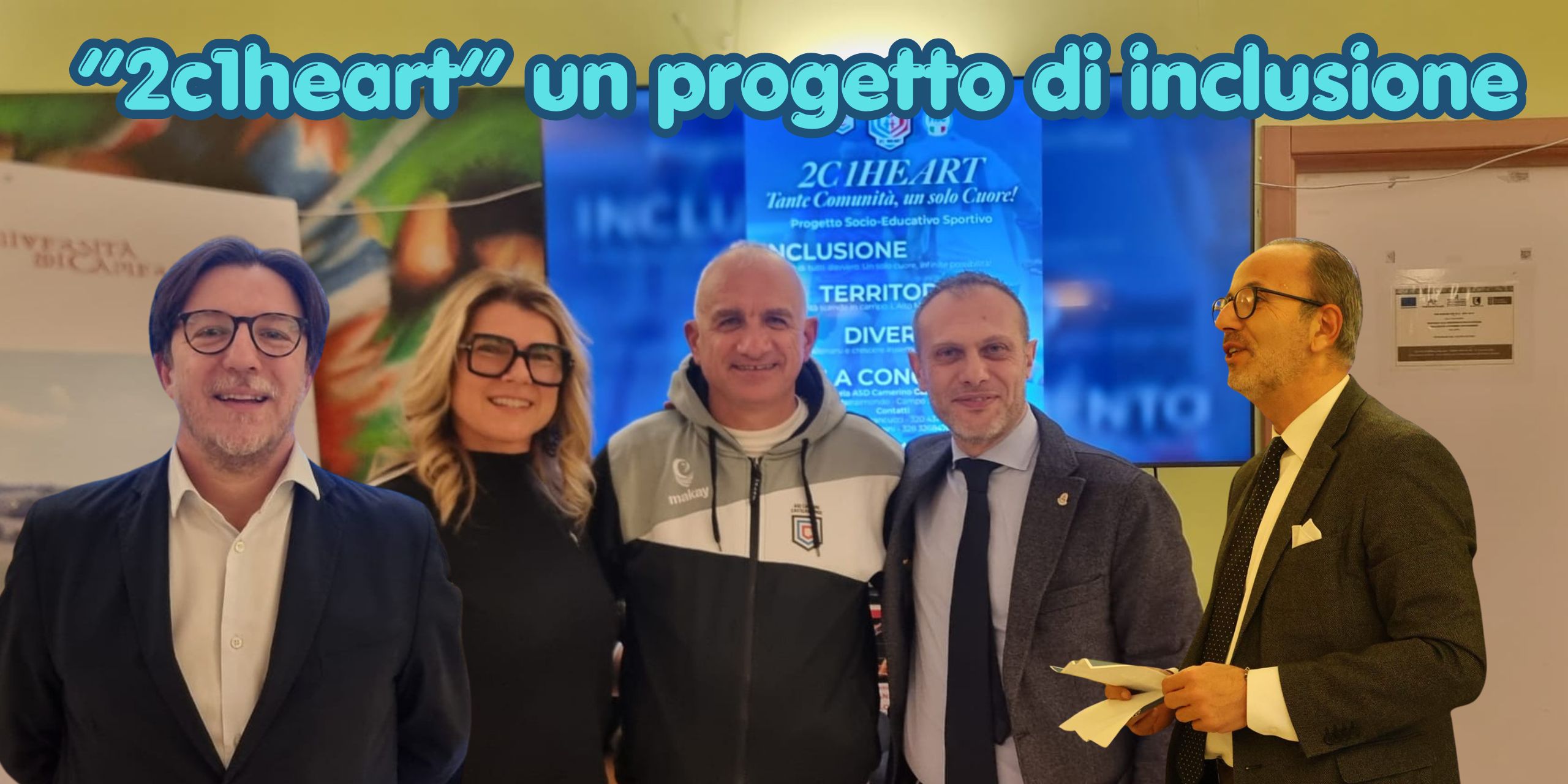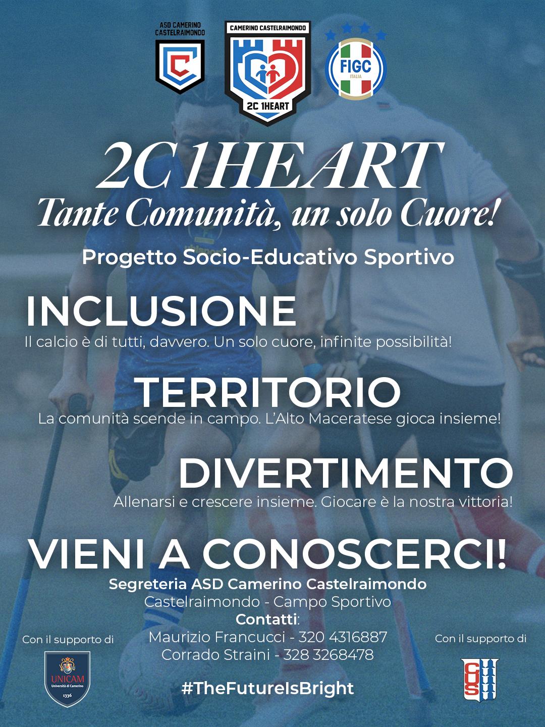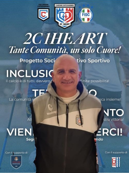 È stato presentato ufficialmente oggi pomeriggio nella Segreteria del Palazzetto “Drago Gentili” del CUS Camerino “2C1Heart – Tante comunità, un solo cuore”, il progetto socio-educativo sportivo promosso dall’ASD Camerino Castelraimondo per avvicinare al mondo dello sport e, in particolare, del calcio paralimpico ragazze e ragazzi dagli 8 ai 50 anni residenti nel territorio dell’alto maceratese, e non solo, affetti da qualsiasi genere di disabilità.