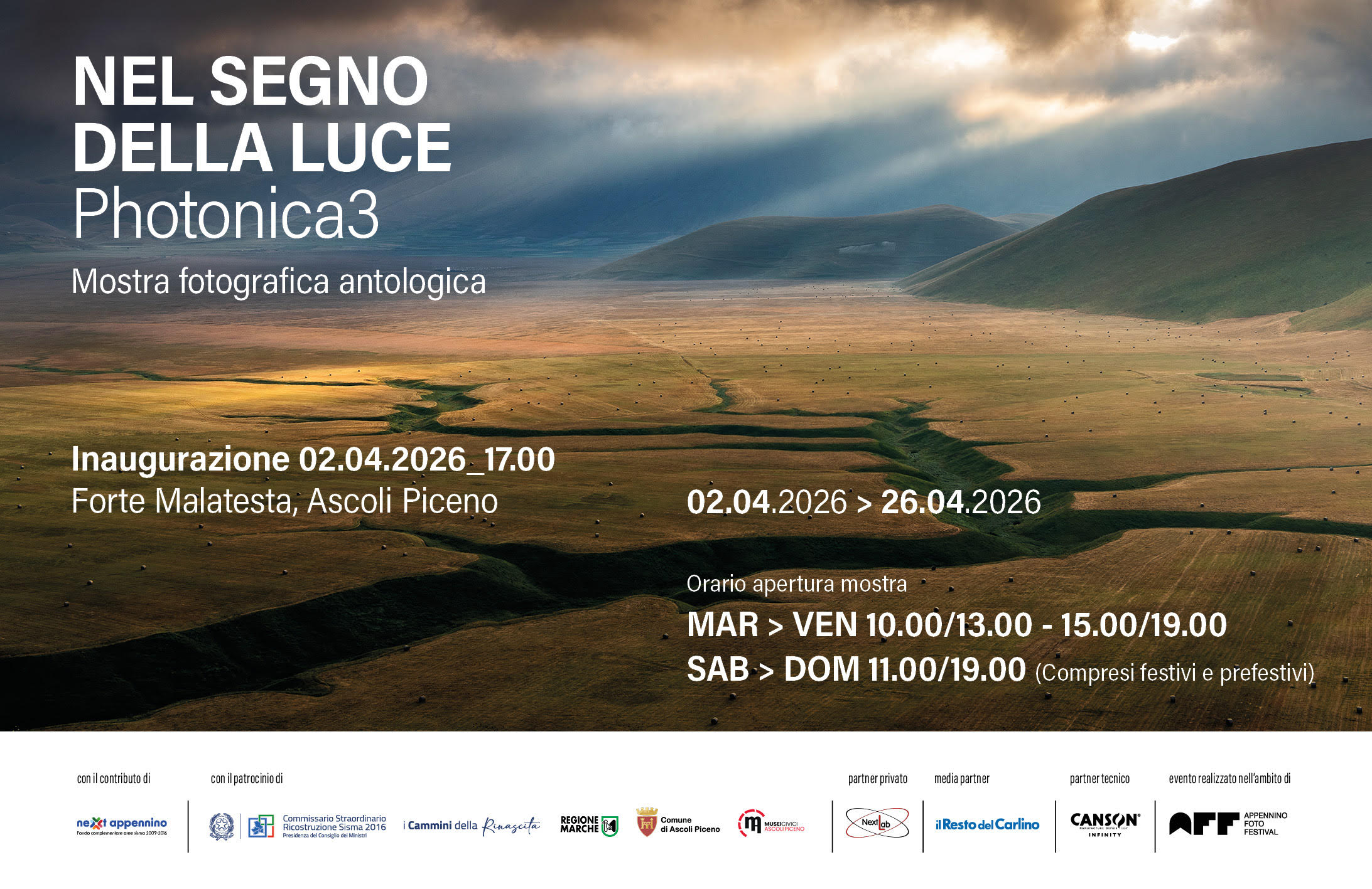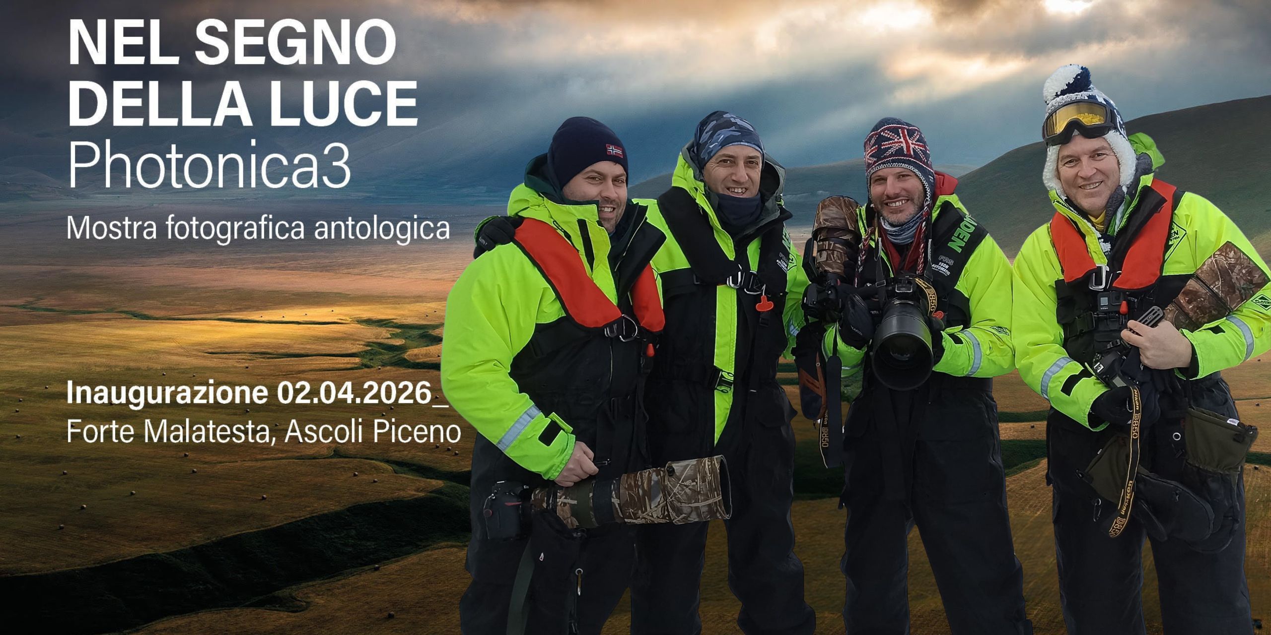 Il 2026 si apre sotto il segno dell’eccellenza per il collettivo fotografico Photonica3. Dopo aver conquistato le giurie dei più prestigiosi concorsi mondiali di fotografia naturalistica, il gruppo annuncia il suo ritorno a casa con la prima mostra antologica che segnerà l’apertura ufficiale dell’Appennino Foto Festival 2026. Il valore artistico del collettivo, composto da sette fotografi del Maceratese, è stato infatti recentemente suggellato da una pioggia di riconoscimenti internazionali che ne confermano il ruolo di primo piano nella fotografia naturalistica: al Glanzlichter der Naturfotografie 2026, Marco Gratani ha ottenuto l’Highly Commended; all’Asferico International Nature Photography Competition 2026 (le cui premiazioni si terranno proprio all’interno delle summer weeks dell’Appennino Foto Festival) sempre Marco Gratani ha portato a casa l’Highly Commended. Al Memorial Maria Luisa Photo Contest 2026 l’Highly Commended è andato a Stefano Ciocchetti, direttore artistico di Appennino Foto Festival; due riconoscimenti anche per Luca Tambella, vincitore della categoria Aerial all’Exposure One Award 2025 e Highly Commended al MontPhoto International Photography Contest 2025 per la categoria Arte in natura. Premi che sono il frutto di un percorso lungo sedici anni: una ricerca costante che ha visto i membri del collettivo esplorare i territori del Nord del mondo, ma mantenendo sempre il cuore pulsante sui Monti Sibillini. Da questa sensibilità verso la natura è nato il progetto che oggi si fa mostra e libro: “Nel Segno della Luce”. L’esposizione, che sarà inaugurata il 2 aprile alle 17 al Forte Malatesta di Ascoli Piceno, non è solo una rassegna di immagini, ma la sintesi di uno sguardo condiviso.