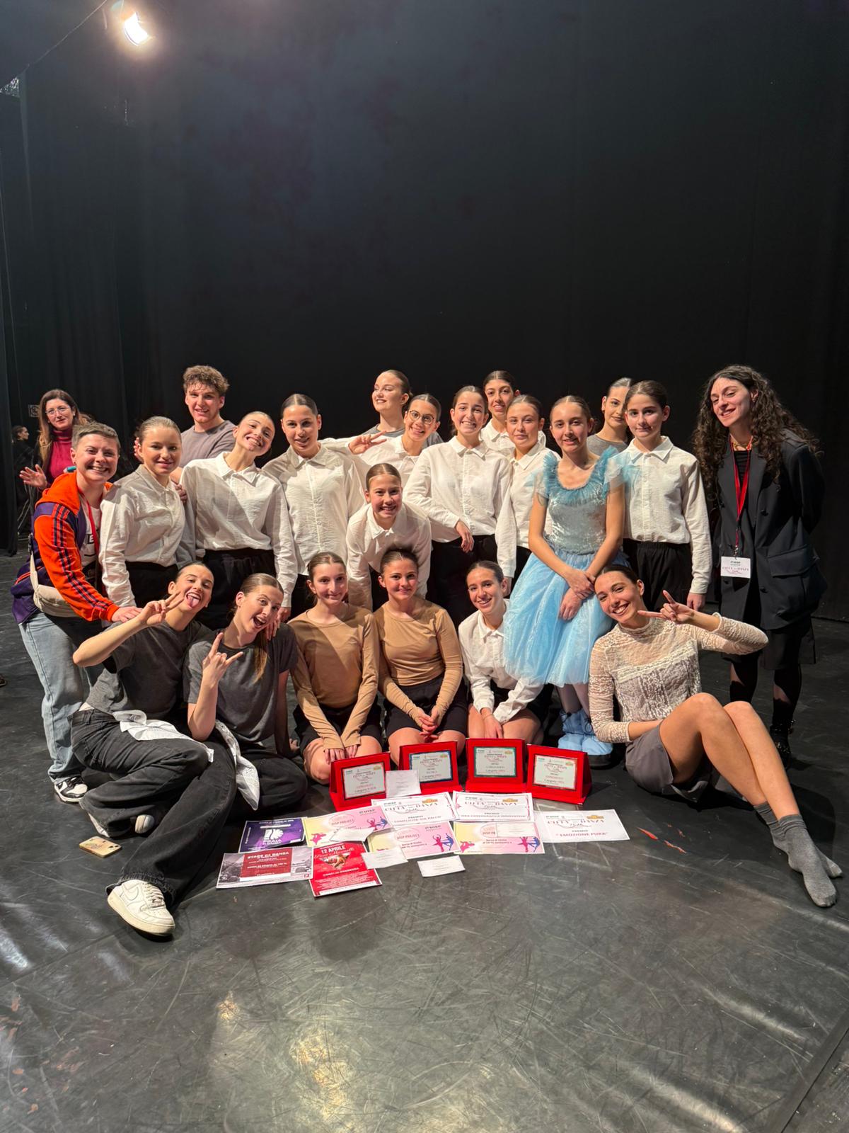 Al Concorso Danza Marche di Porto Sant’Elpidio, il Gruppo Adolescenti Hip Hop ha conquistato un brillante Secondo Posto con la coreografia “Hey Bro! Let’s Dance!”, firmata da Johara Castellucci. La performance ha inoltre ricevuto il Premio Giornalistico nella categoria adolescenti e una prestigiosa borsa di studio presso il DHHD Milano (DanceHaus Hip Hop Department), riconoscimento che valorizza il talento e l’energia espressa dal gruppo. Grandi soddisfazioni anche al Concorso Danza Fiumicelli di Gubbio, dove Beatrice Santecchia e Viola Piermattei, con il passo a due contemporaneo “Ascent”, coreografato da Beatrice Castelli, hanno ottenuto il Primo Posto nella categoria Under, aggiudicandosi inoltre una borsa di studio per il Festival di Danza Città di Sabaudia, assegnata dal maestro Francesco Annarumma