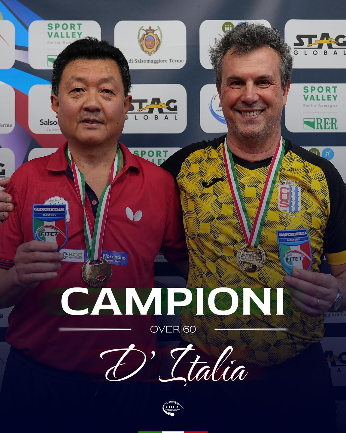 C’è voluta tecnica, intesa e un briciolo di sangue freddo per superare anche l’imprevisto più incredibile. Ai Campionati Italiani Masters di Salsomaggiore Terme, Luca Belardinelli ha conquistato il titolo di Campione d’Italia nel Doppio Maschile Over 60 di Tennistavolo, in coppia con il compagno di lunga data Li Weimin. Una vittoria arrivata al termine di una finale al cardiopalma contro i campioni uscenti, che ha regalato emozioni e un aneddoto destinato a restare nella storia del torneo.